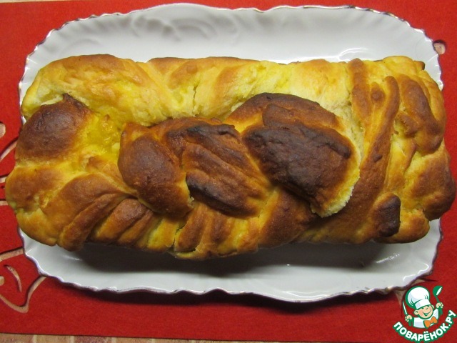 Это шикарная сдобная выпечка!!! Я только начинаю иногда использовать тыкву. Ну как же вкусно получилось!!! Я в диком восторге!!! Делала все точно по рецепту. Не очень получилось с красивым плетением, что-то давненько я не заплетала косички. Но в целом все отлично получилось.