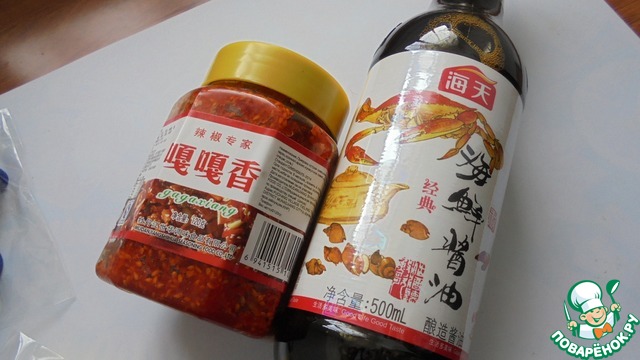 Острая приправа (из перца, арахиса, кунжутного семяни, лука и специй), соевый крабовый соус ( если я правильно понимаю). Такую приправу и соус я не видела даже. Острую приправу уже попробовала (вкусно!).