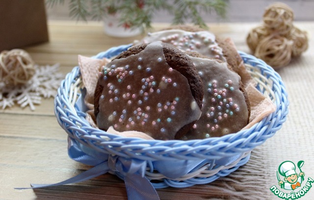 Открываем... Ароматное, шоколадное, новогоднее печенье... Настя испекла сама...