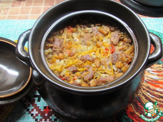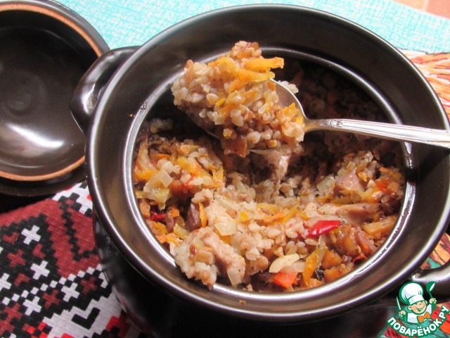 Гречка с мясом и шкварками в горшочке по рецепту Дарьи Акси1980 https://www.povarenok.ru/recipes/show/71834/