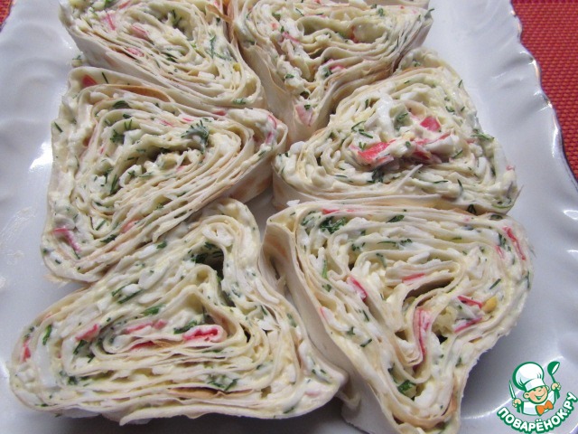 Ну конечно, получилось вкусно. Лаваш у меня был подсохший, но после того, как нарезанные кусочки полежали в холодильнике, все стало гармоничным единым целым.