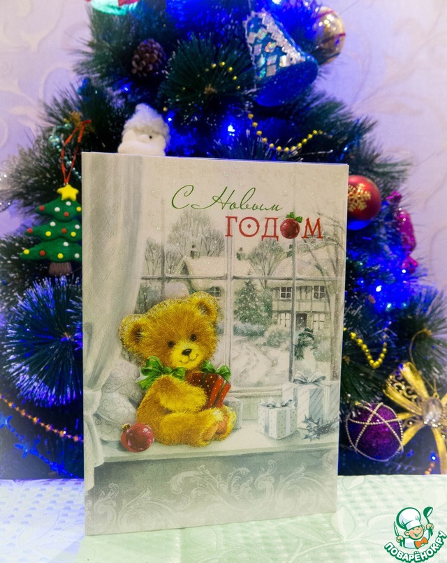 Вот такая новогодняя открыточка с милым медвежонком и искренними пожеланиями для всей семьи!
