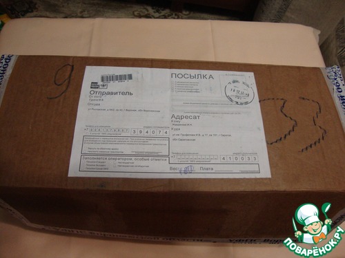 Огромная коробища, хорошо, что мужа послала на почту, не донесла бы