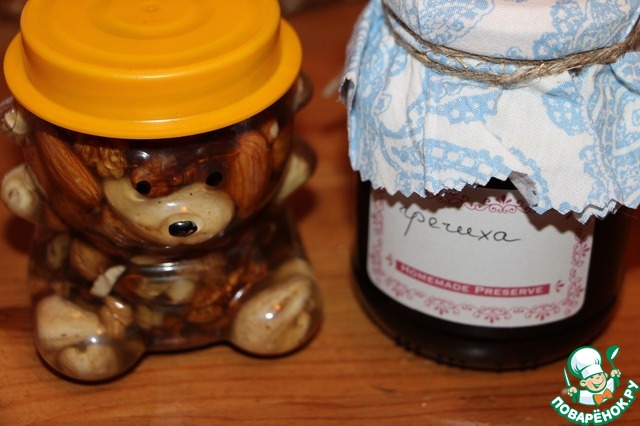 Мед гречишный. И орешки в меду в смешной прикольной баночке.