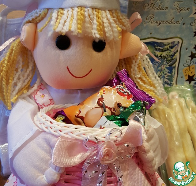 Замечательная очаровательная куколка с корзиночкой сладких подарков!