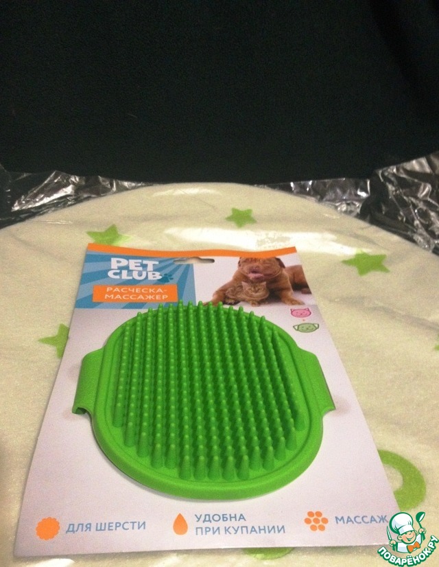 Мой Морозик не забыл и для Джесси прислать подарок. Моя сообразительная девушка как только увидела эту чесалку на диване рещила обойтись бЭз потсторонней помощи. Улеглась на неё спиной и стала ерзать - валяться. Короче, напричёсывалась так, что чесалка осталась на спине. Пришлось выручать животину. Шерсть на спине стала покороче))))