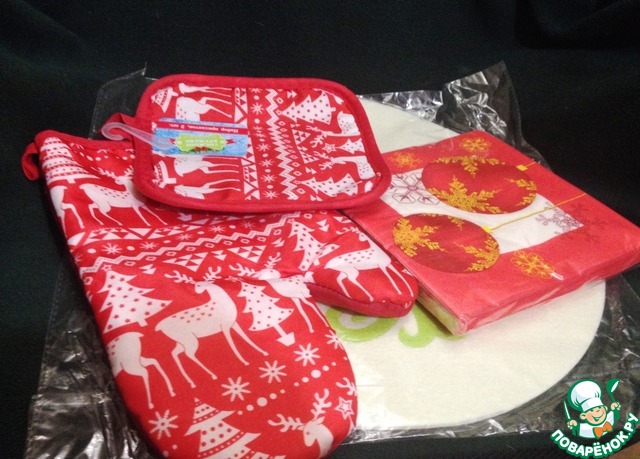 Милые сердцу хозяйки кухонные прихватка с рукавицей и салфетки в тон им.
