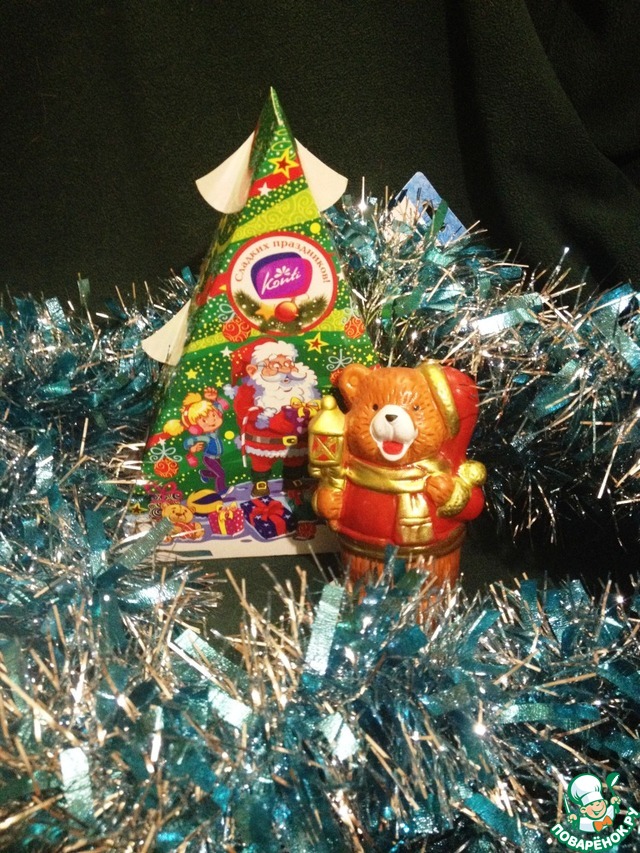 А эту композиция он вместе с креслом упёр к себе в комнату. Пусть до Нового года постоит под ёлкой!)))