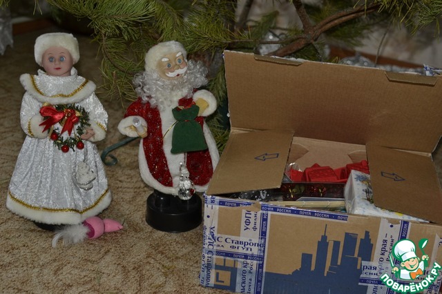 Моим замечательным Морозиком оказалась Оля Федюнина! Как всегда, наша почта не принесла извещение, и Галочка написала мне трек-номер, по которому я благополучно получила свои 3 с лишним кило счастья! Но терпеливо дождалась Нового Года и возвращения дочери от друзей утром 1.01, что бы вместе любоваться подарочками. Все тщательно упаковано и поэтому, доехало в целости и сохранности!