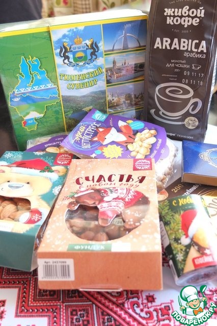 Орехи, мои любимые орехи! Потрясающий ароматный кофе, шоколад молочный с целыми орешками (обожаю такой!!), набор конфет "Тюменский сувенир"!