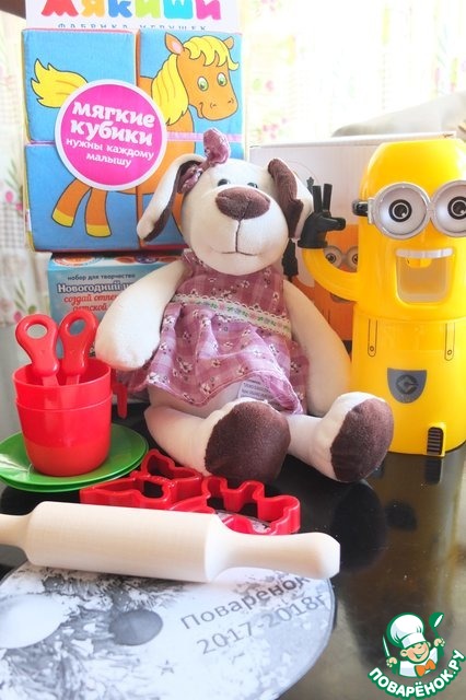 Первым делом пришлось отфоткать подарочки для дочки, она нетерпеливо подпрыгивала и вставала на цыпочки, чтобы все увидеть! Очаровательная собачка в милом платьице, набор кухонной посуды (скалка, как настоящая!), мягкие кубики, подставка под зубные щетку и пасту в форме миньона, шарик на елку, на котором можно оставить отпечаток маленькой руки!! Подарки для малышки помогали выбирать Наташины внуки! Спасибо им огромное от нас с мужем и нашей малышки!!