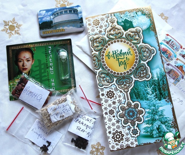 Еще в конверт Тамарочка положила магнит города Севастополь и парфюмерную композицию с ароматом зеленого чая.