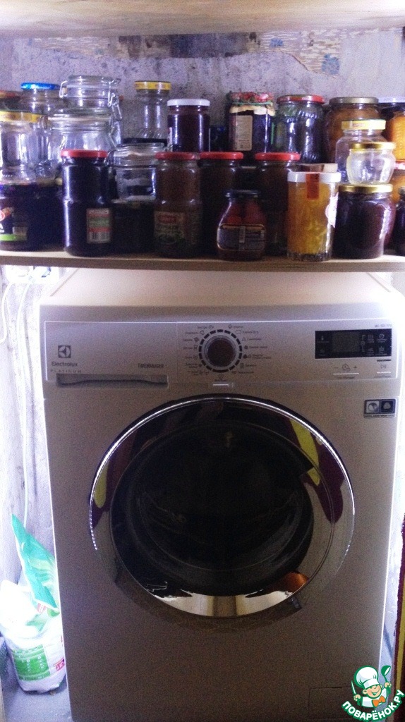 После ванной мальчик мой добрался до встроенного шкафа, в котором я хряню заготовки на зиму. Поменял полки и купили мы стиральную машину. Подключать вызвал мастера. А вот пол подготовил сам, сам провёл освещение.