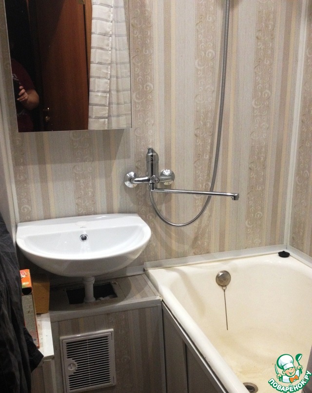 Я уже писала, что в мае мой сыночка решил привести ванную комнату в порядок. Обсудили. Вроде не затратно по деньгам: покрасить стены, потолок, поменять дверь и восстановить эмалевое покрытие в ванной. Но... аппетит приходит во время еды. Сначала у сынули возникла идея обшить помещение пластиковыми панелями, закрыв трубы, панели потянули за собой потолок. А потом... почему бы не разгуляться? Плитка на пол, экран к ванной, ну и по мелочи шкафчик, угловая полочка, крючки для полотенец. Сын делал ремонт сам, я ему мало чем могла помочь. Так... поднеси, отнеси, иди, не мешай.