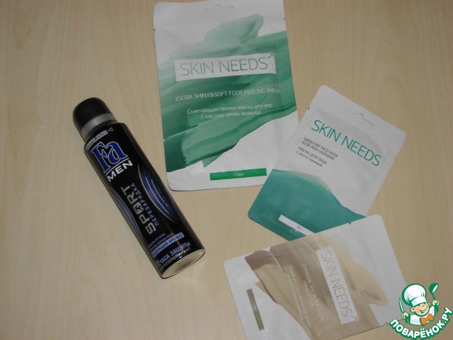 Светочка не забыла позаботиться и о моей красоте: прислала обалденную масочку для лица и пилинги для рук и ног (Между прочим, корейского производства! Для меня загадка, как Светочка догадалась о моей слабости к корейской косметике!), а для мужа - вкусно пахнущий дезодорант!
