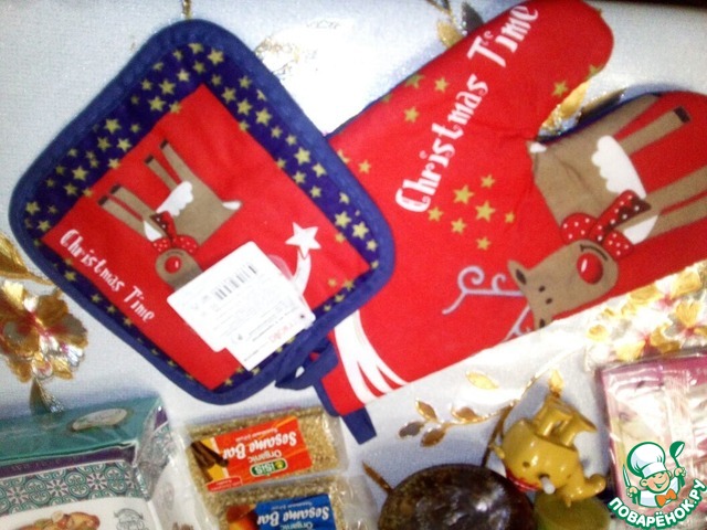 новогодний комплект прихваток. очень плотные и яркие. (плотные-хорошо в печку с ними лазать )