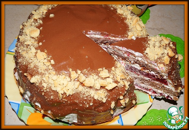 Торт "Малинка" от Юли Юлия1211. Очень нежный, вкусный торт, со вкусом и ароматом ягод. Малины не хватило, добавила клубнику. Сверху шоколадная глазурь.