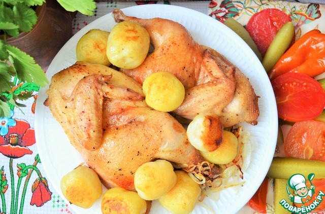 Цыпленок у меня весом 600 г., отлично подошел к нему этот рецепт.