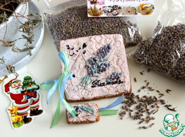 Дальше история такова, вижу я как-то отчет Оли Олюшен, где она разместила красивое фото кокосово-лавандового печенья от Леночки Гошлен, меня сразу зацепил рецепт. В комментарии, я без всякого умысла-намека просто поинтересовалась, где же вы достаете лаванду, чтобы использовать её в кулинарных целях, ну ни разу не видела её в продаже. Мне молниеносно отвечает Лена, пиши адрес, пришлю. Я в легком шоке, не хочется напрягать человека, мне очень неловко, но... но дальше можно уже ничего не писать, вы уже поняли, что я стала счастливой обладательницей лаванды. Удивительные, отзывчивые, добрые люди на нашем сайте! И ещё Леночка вложила в послание потрясающе вкусный расписной пряник ручной работы. Не знаю, сколько раз написать спасибо, какими словами выразить благодарность этому чуткому, доброму, отзывчивому человеку Леночке Гошлена.