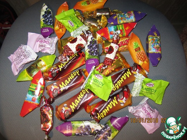 А к чаю... Дед мороз (на фото) или Снегурка Олюшен прислала вот такие конфеты производства Казахстан (я слышала, что они вкусные, теперь всей семьей смогли убедиться).