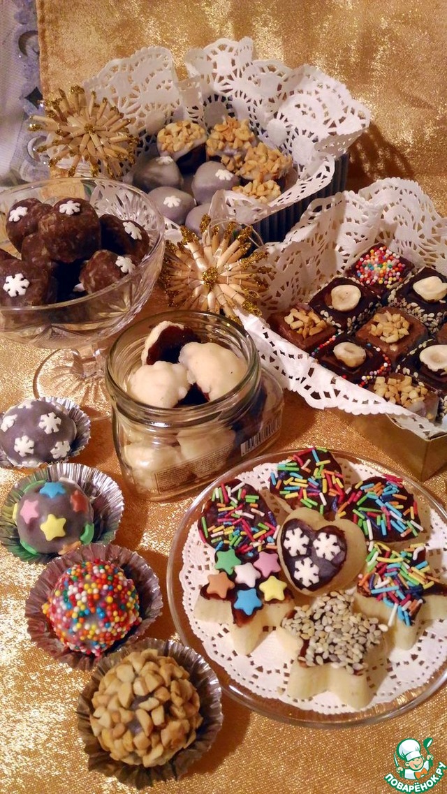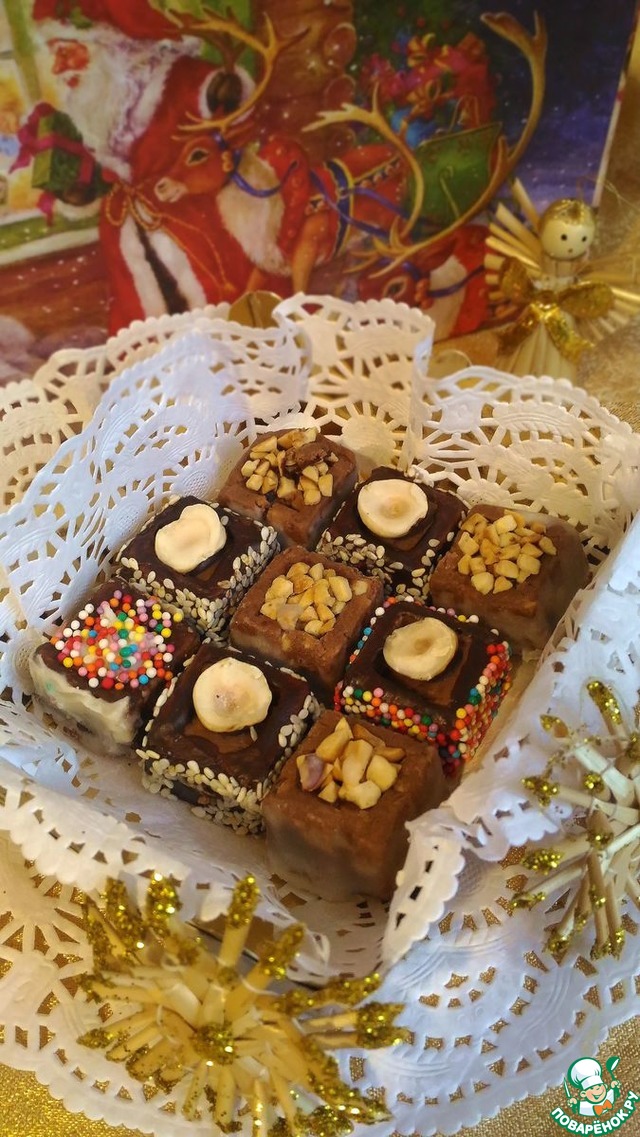 Тоже делала в формочках. Конфетки получились мягенькими, но форму держали и без холодильника. Украшала на любой вкус: окунала в шоколад, обваляла в кунжуте, разноцветной посыпке, сверху посыпала арахисом, фундуком.