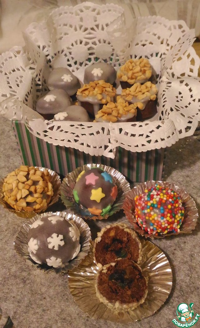 Шоколадом не заливала, так и оставила пестренькие, сверху на капельку шоколада пристроила посыпку-снежинку.