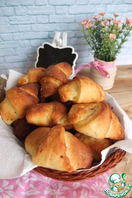 Булочки-рогалики на творожном тесте "Нежность" Вкусные, нежные, творожные, не приторные! Добавляла вяленую клюкву! Кушали с удовольствием всей семьей!