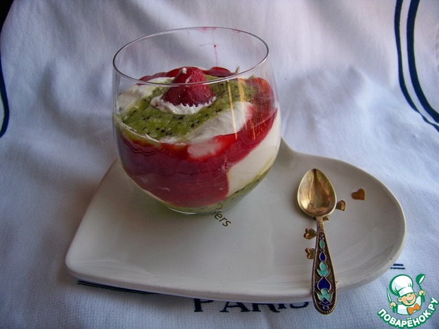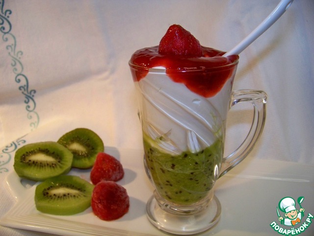Творожный десерт с малиной и киви