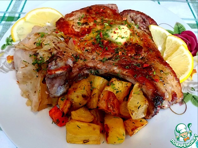 Очень любим такое вкусное мясо! Корочка румяная, а внутри нежное и сочное! Готовить считанные минуты, просто и быстро. Подавала с картошкой и капустой.