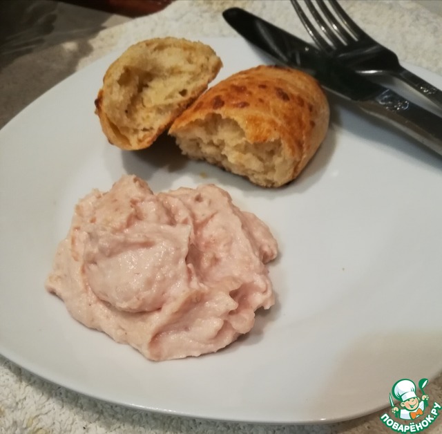 Хлебная корзинка "Хлеб-всему голова" Ветчинный рийет готовится легко и просто. Берем молоко или сливки 10%-20% (по желанию), доводим его до кипения и растворяем в нем сыр, у нас получается тягучая масса, снимаем ее с огня, остужаем минут 15 (я это делаю, пока у меня подходит тесто, тк использую соус в качестве смазки для верха булок) Отдельно варим яйца вкрутую, ветчину нарезаем кусочками, которая "по зубам" нашему погружному блендеру или мясорубке (в случае мясорубки надо пропустить пару, а может и все 3 раза) Смешиваем яйца, ветчину, соус и прокручиваем блендером до однородного пастообразного состояния. Вместо ветчины можно взять курогрудку запеченую или отварную, мясо, в том же состоянии, рыбу с/соленую или запеченую, крабовые палочки. Опять-таки - все в Ваших руках и фантазия приветствуется. Можно на одной основе сделать сразу несколько таких намазок. Очень хороши такие булочки и с дзадзыки Приятного аппетита.