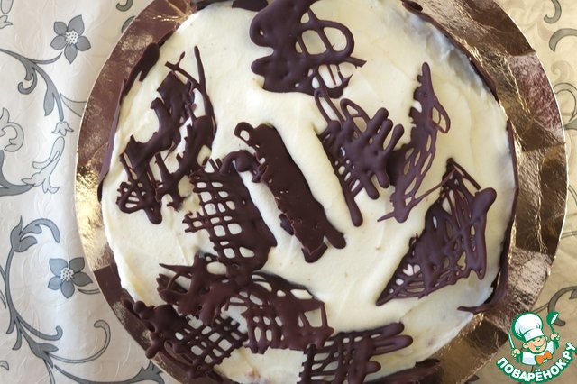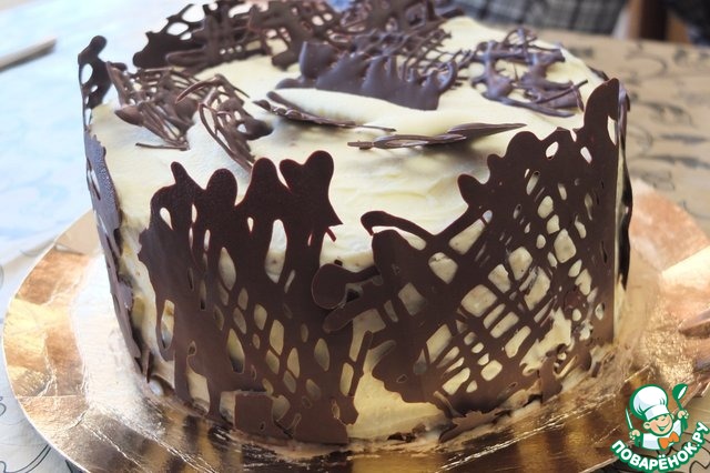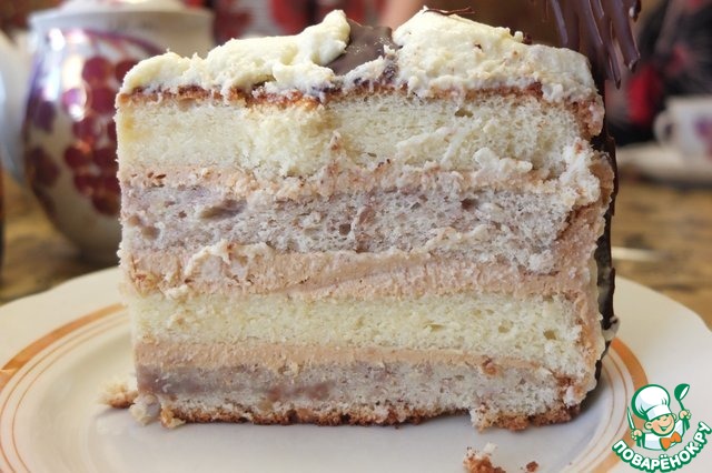 Пекла два вида коржей, классический по этому рецепту Бисквит простой и с добавлением грецких орехов. Делала два крема - сливочный сыр+варёная сгущенка, сливочное масло+сгущенка. Оформление из растопленного шоколада. Тортик на удивление получился нежным, не приторным, вкусным и сбалансированным! Гости остались довольны!