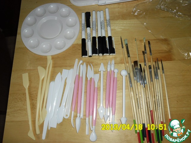 Для сахарной мастики желательно иметь специальные ножи, вырубки, молды. Эти инструменты так же есть в супермаркетах... За долгие годы у меня набралась большая коллекция всех этих принадлежностей.
