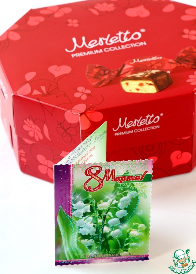 Вкусные конфеты и обворожительная маленькая открытка с теплыми поздравлениями.