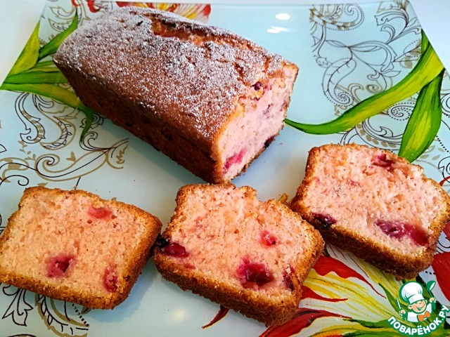 Кекс восхитительный! Какой же он вкусный, с тонким ягодным ароматом и приятным нежным цветом! У меня кисель с натуральным соком черешни, добавила вишню. Кекс получился с очаровательной трещинкой, чему я очень рада!)) Разрезала ещё тёплым. Очень нам понравилось!