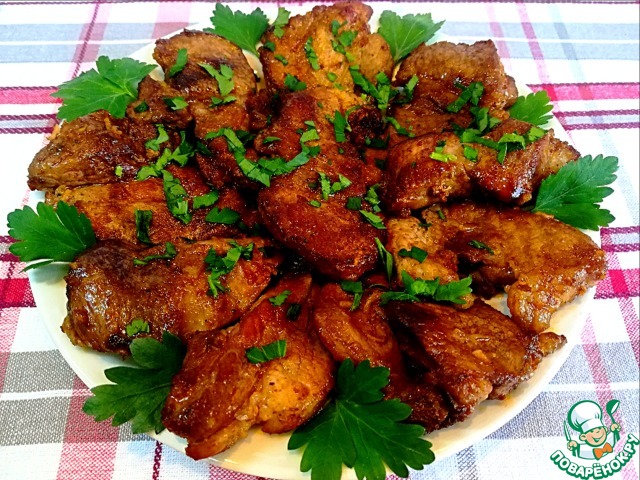 Мясо мариновалось больше суток, обжаривала около пяти минут, несколько раз переворачивала, чтоб все соки остались внутри. Мясо получилось невероятно вкусным, нежным, сочным! Муж похвалил, ему очень понравилось!