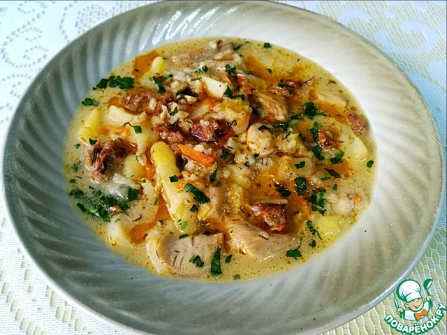 Рассольник с шампиньонами и рисом от автора Алевтина Семенова