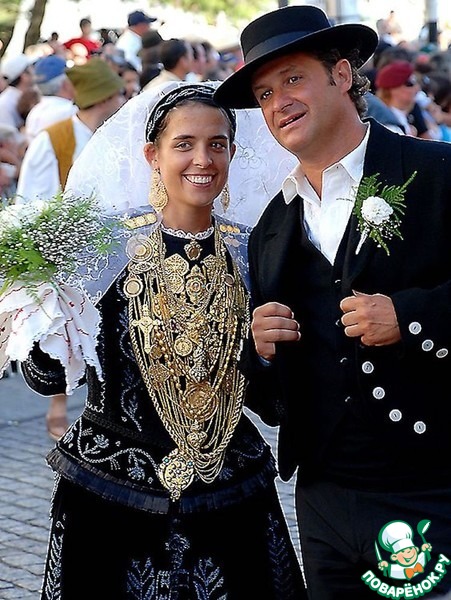 В Португалии невесты носят тунику, украшенную филигранными украшениями, а женихи обычно надевают тёмный костюм, белую рубашку и шляпу.