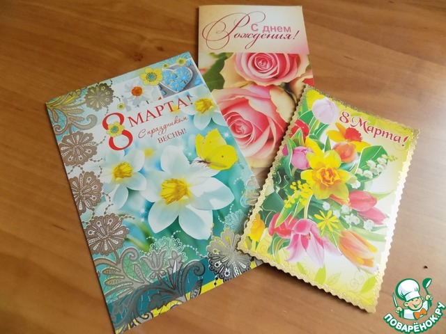 Общий вид посылки. В коробке ещё оказался один отдельный пакет с поздравительной открыткой. Я получила от Наташи поздравления и с ДР, и с 8 Марта!