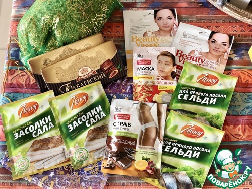Приправы! Для засолки, для сала! Шоколадный скраб для тела... ммм... от мужа отдельная благодарность. Маски для лица, а это богатство я люблю и уважаю. И горький шоколад...
