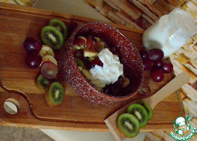 1. Пересветы на сметане и желтой ткани, -нужно или убавлять шаг экспозиции, если нет такой функции или не помогает, то прикрывать свет тюлью, калькой или др. полупрозрачным, однотонным материалом. А еще хорошо снимать в пасмурную, но не сильно темную погоду, когда нет жесткого солнечного света. Есть завал вправо, если сделала специально, то здесь он на МВ не очень нужен. Фрукты вышли очень аппетитные(те что лежат перед миской)на них весь фокус пришелся, а не на салат, что было бы логичнее.