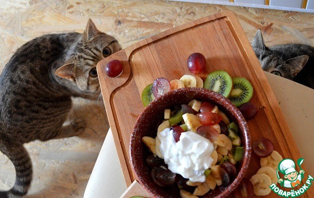 Алинушка!Отличное участие в фото - кото - эстафетной выставке Котейки - внимательные свидетели твоих трудов очаровательные, им по 5 каждому носу .4 фото с салатом более всего понравилось