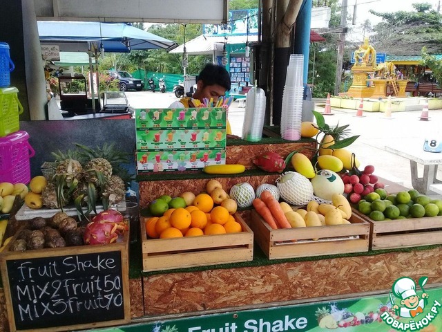 Всегда любила Тайланд за его инфраструктуру. Тут всё сделано для туристов. Даже фруктовые шейки оснащены удобной ручкой, так что можно нести сразу 3 шейка в одной руке. Это очень удобно, когда набираешь кучу еды на рынке и несешь её в отель или за столик чтобы съесть.