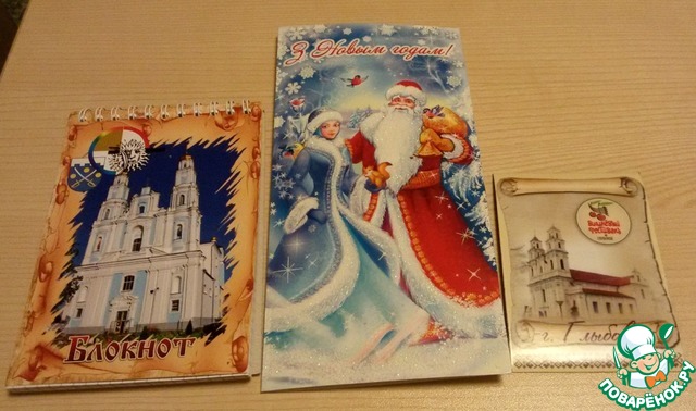 Блокнотик, магнитик и открытка с добрыми пожеланиями. Блокнот уже скатался со мной в Устюг и теперь живёт у меня в сумке.