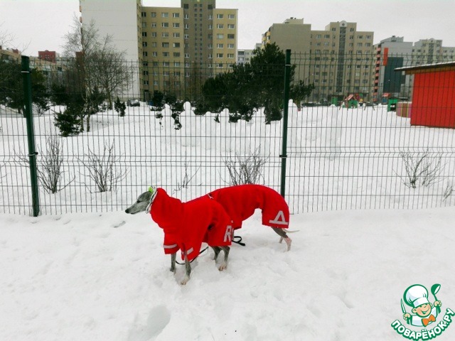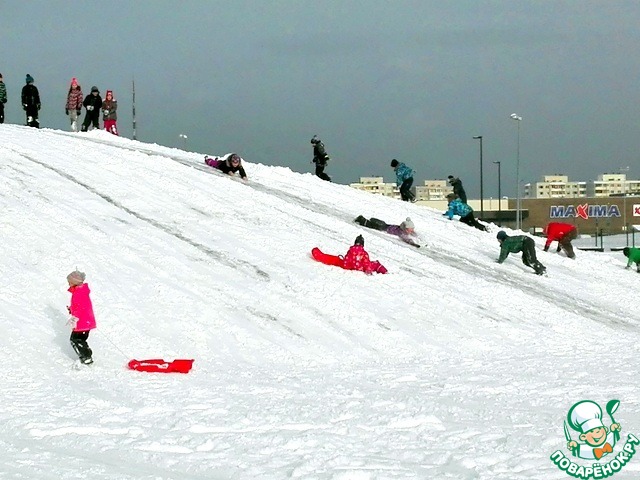Но мы сегодня нашли рыхлый снежок, побегали на нему...