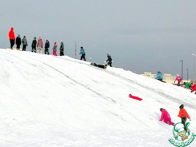 Летом красивая и зелёная горка. А зимой детишки катаются