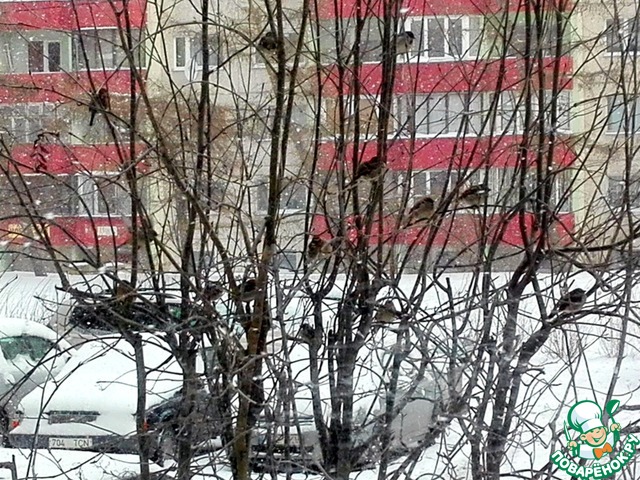 Воробушки не боятся. А вот скворцы пока ещё не привыкли к прохожим.