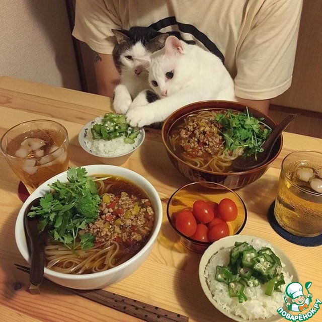 Коты, еда и дети!