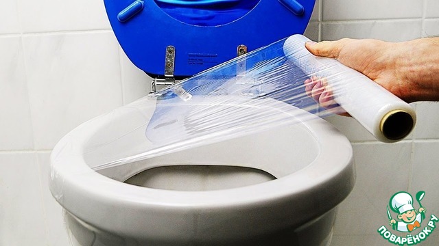 Возьмите рулон пищевой пленки и оберните им унитаз, создавая импровизированную крышку. Осторожно надавливайте на нее, создавая давление в раковине. Таким образом, засор пройдет не хуже, чем при обработке настоящим вантузом. Удалите пленку и выбросьте в мусорное ведро.