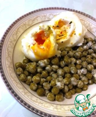 У меня по классике яйцо с горошком. Замечательно получилось. Очень быстро. Первое получилось в крутую (оно слева), а втрое подержала буквально на 5-7 секунд меньше, оно почти всмятку.
