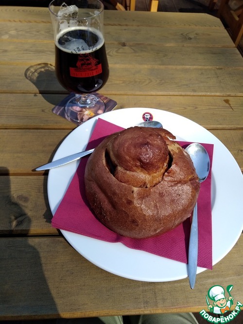 Мы всегда заказывали одну порцию на двоих чего бы то ни было. Порции очень внушительные. Вот и здесь-один суп и 2 ложки) суп обалденный-густой, наваристый, ароматный, мяско тает, хлеб свежайший, корочка снаружи, внутри мякушка…
